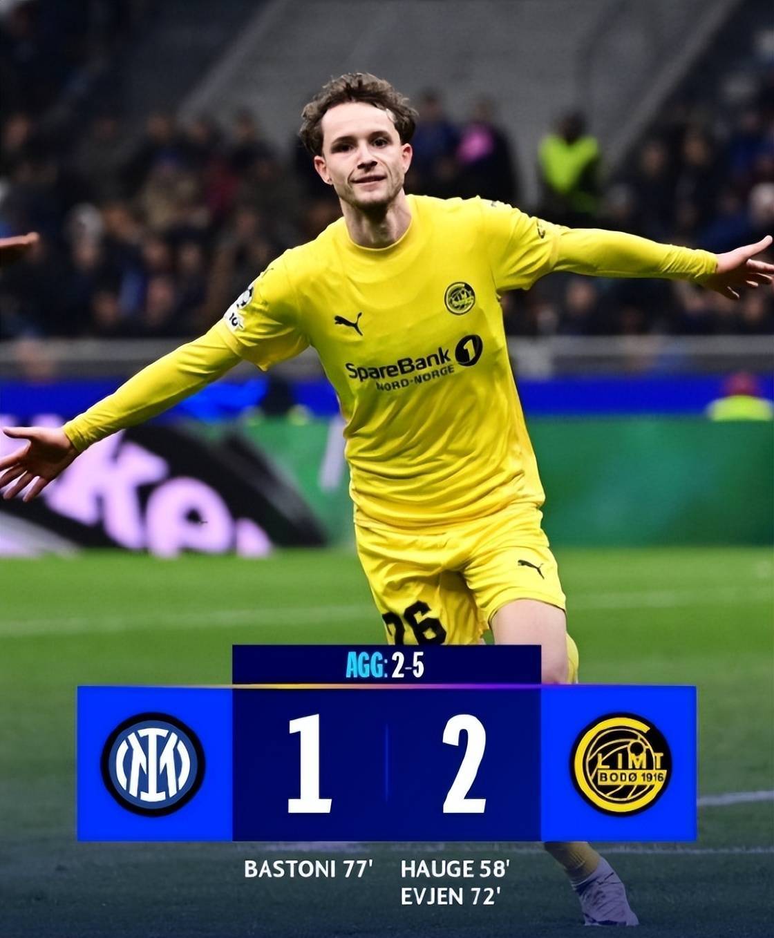 欧冠1/8决赛附加赛的赛事冷门蛮好的,因为被认为更的球队并没能拿出出色的表现,所以首回合比赛皇马也只是1比0小胜本菲卡,次回合仍有出局的可能性。不过更为悲惨还是国米,蓝黑军团客场2比5不敌博德闪耀,回到主场1比2不敌对手出局,主场丝毫没能祭出更高效的表现,这也是球迷们不理解的,毕竟这个对手当时被认为是附加赛中相对弱的球队,虽然有黑马特质,但是未必能双杀国米。