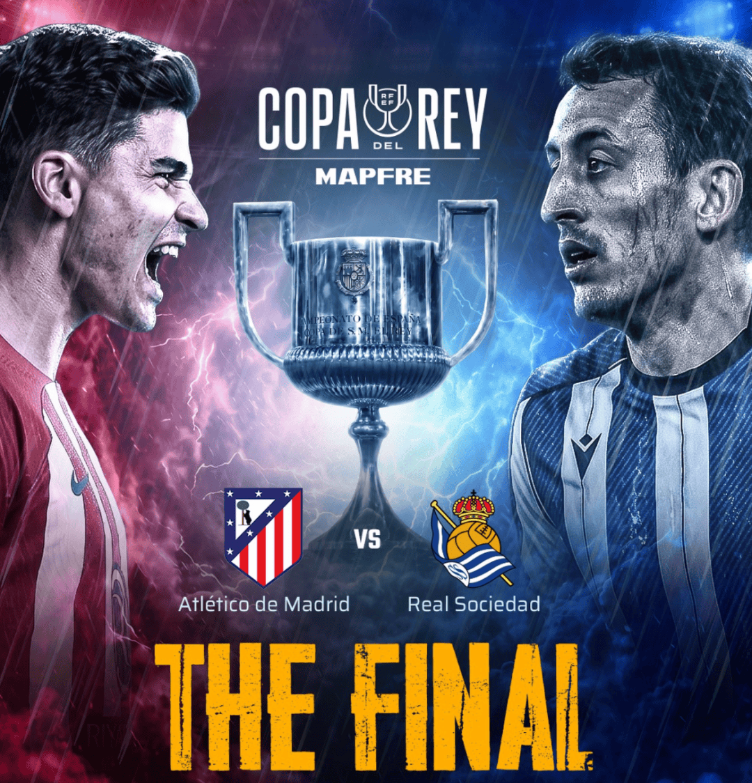 马德里竞技淘汰巴塞罗那后将寻求夺得国王杯冠军,即将离队的格里兹曼动力十足,预计西蒙尼将排出最强阵容,床单军团一向以意志力强著称。现在皇家社会和皇家贝蒂斯都在给马德里竞技的欧冠旅程加油,因为不成器的皇家贝蒂斯和维戈塞尔塔都被淘汰,导致西甲只以微弱优势领先德甲。皇家社会本场拥有很好的机会,本世纪的国王杯常规时间冷门较多,但对他们不利的是已经连续四个赛季的国王杯决赛出了冷门,他们还能继续爆冷吗?
